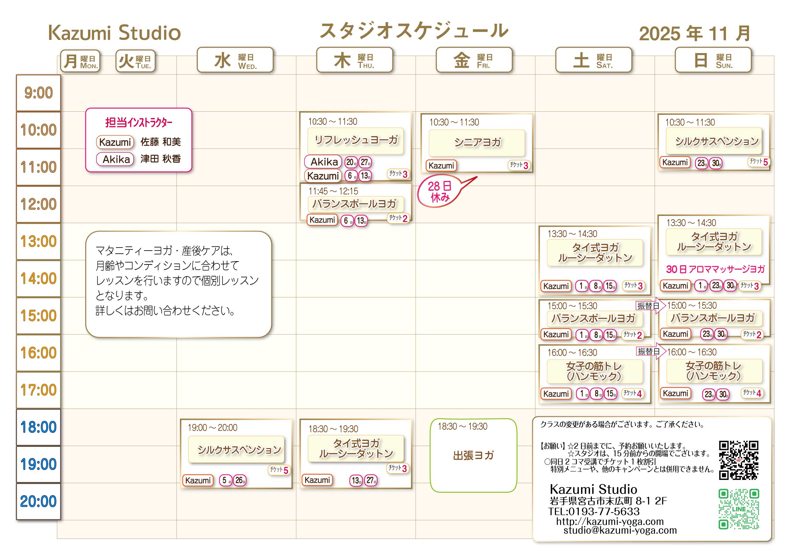 指導歴15年、インストラクター育成やヨガを通して企業様の健康経営、地域の健康事業などの講師も務め、岩手県立大学都短期大学部では非常勤講師を担当。